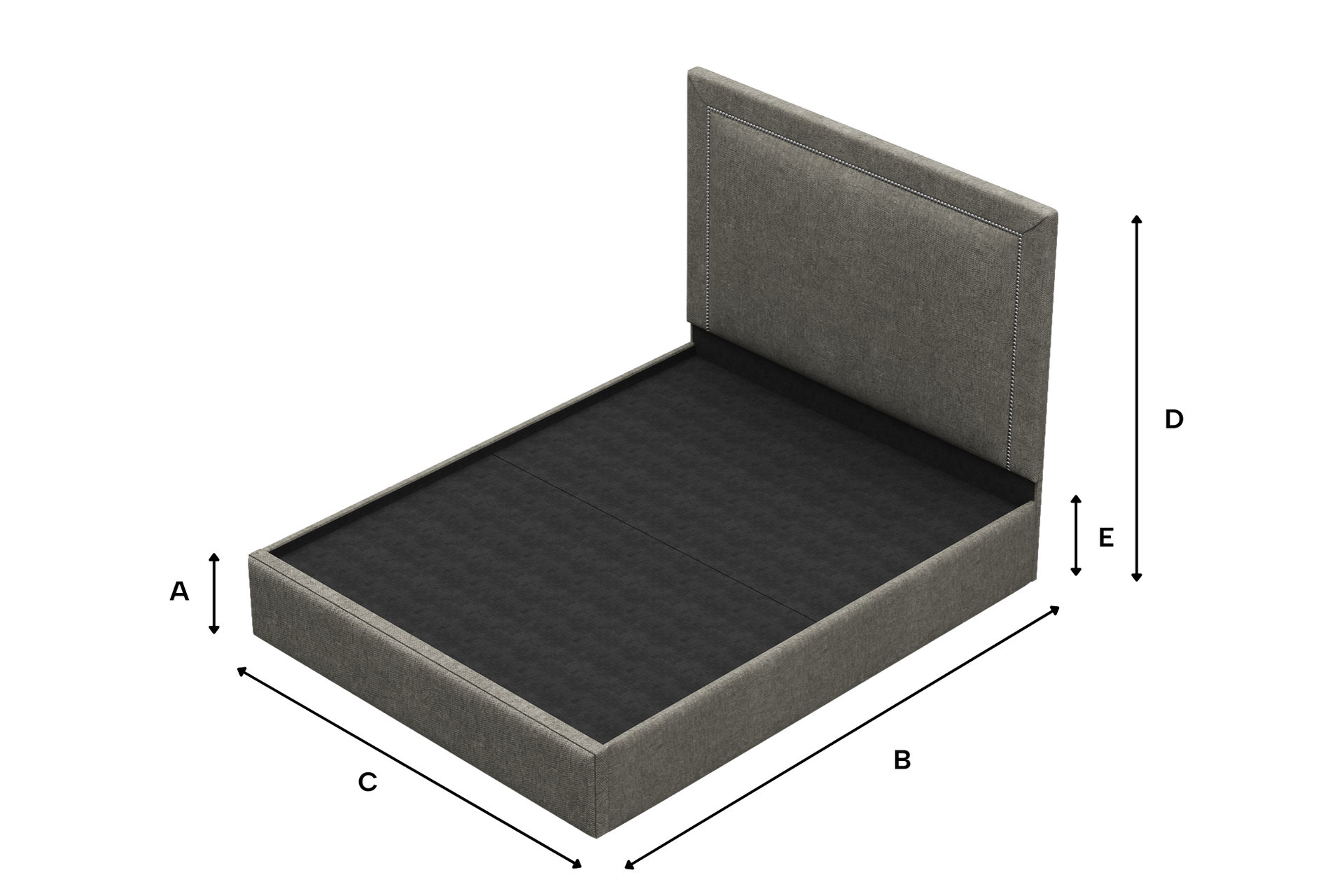 - Fabric wrapped platform bed – no slats or box spring required