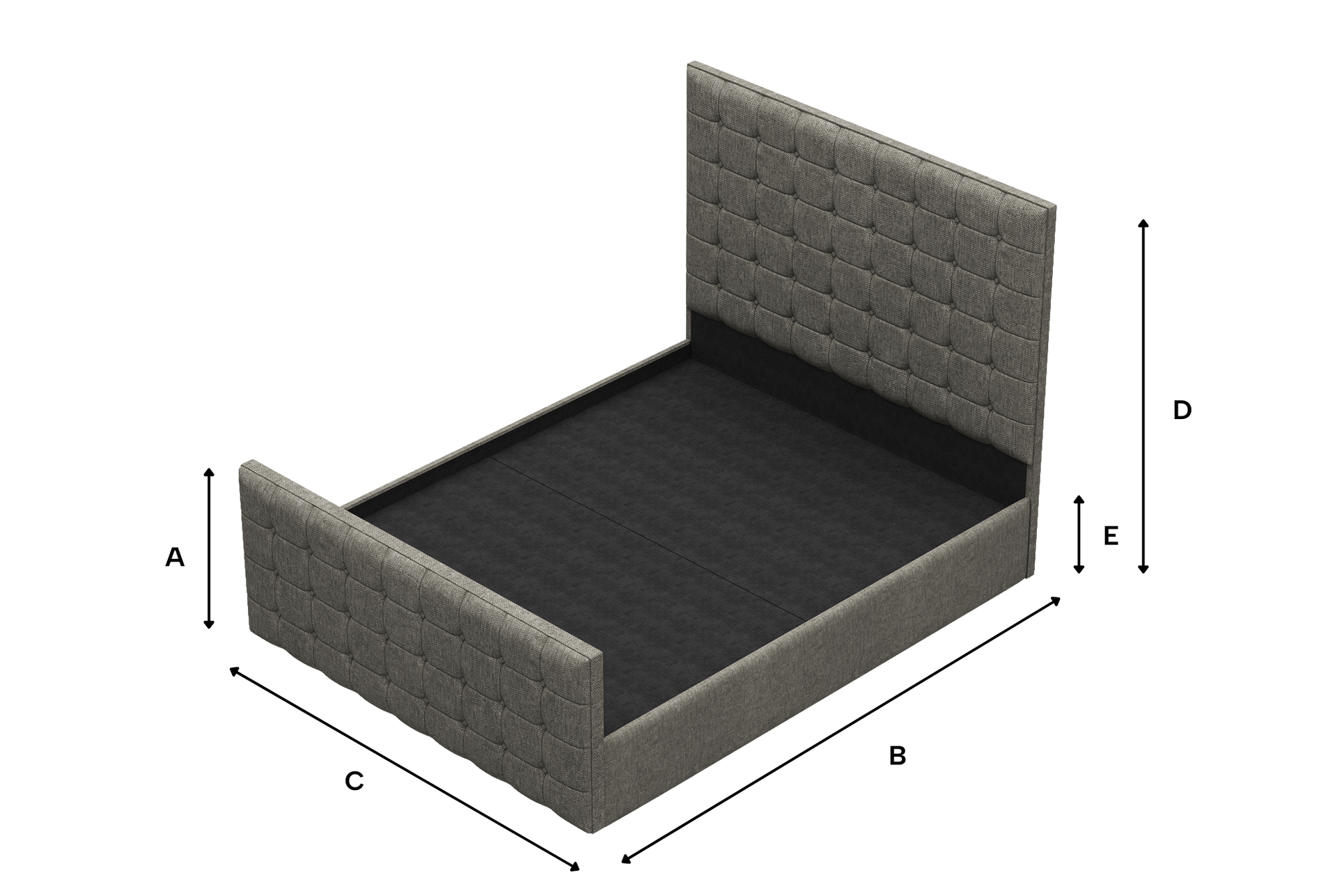 - Square tufted headboard and footboard for a plush bedstead