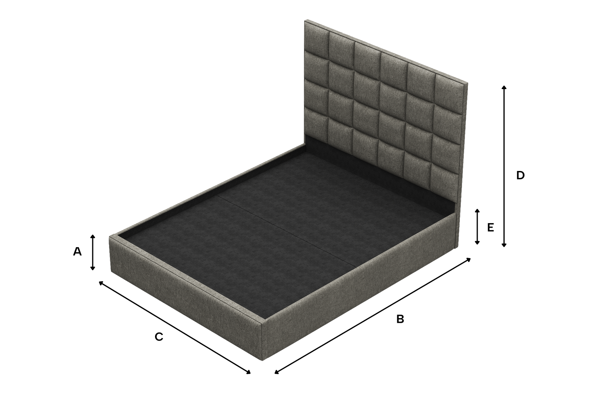 - Grid-tufted square headboard